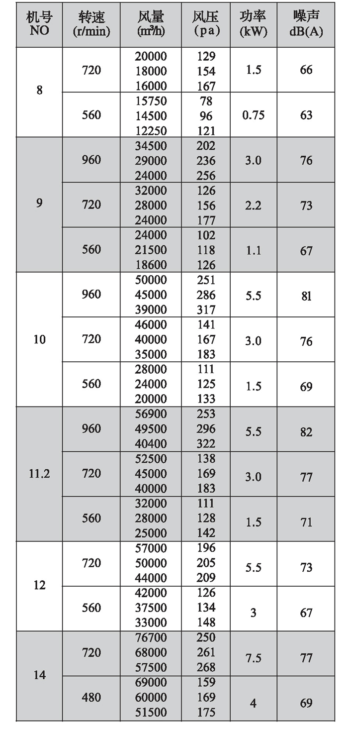 DWT-I型(軸流式)續表