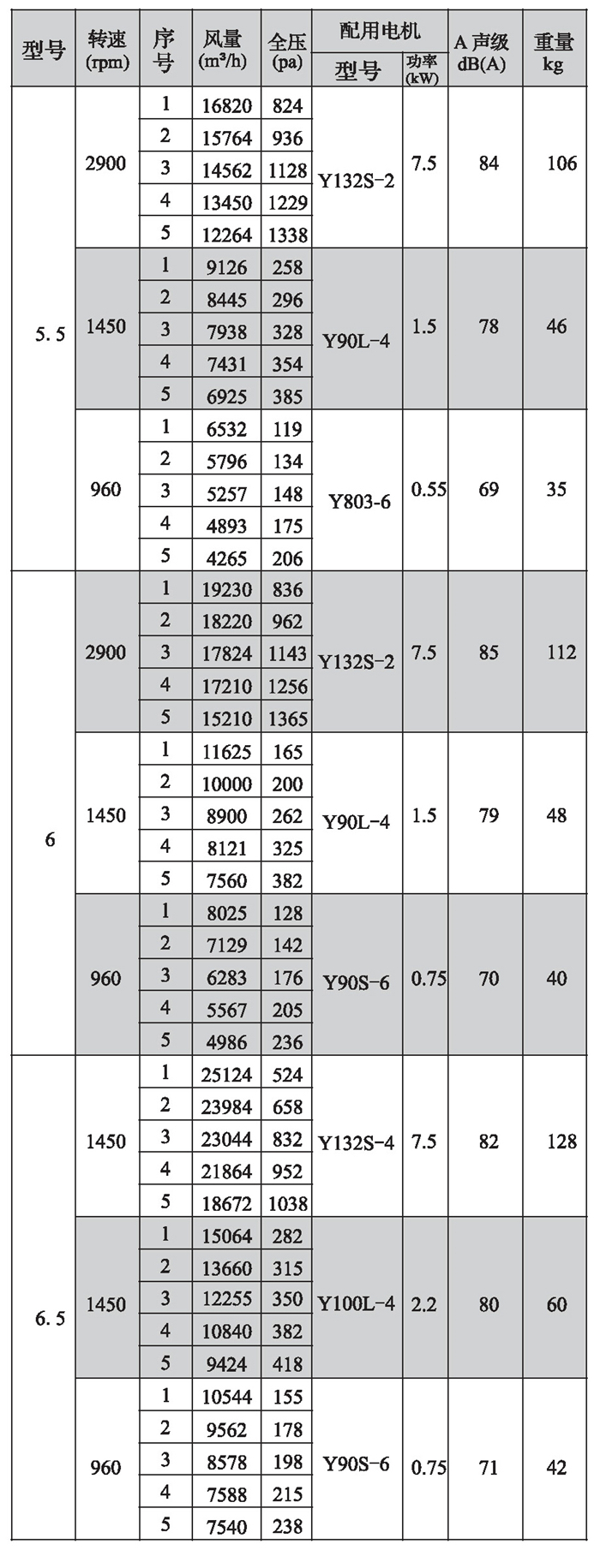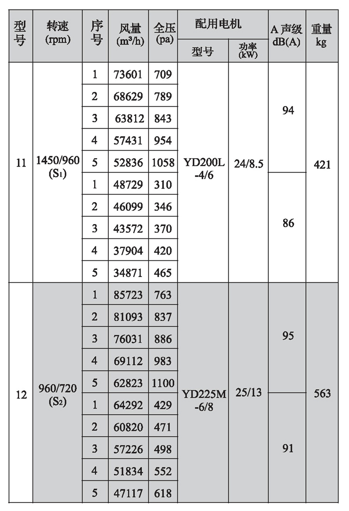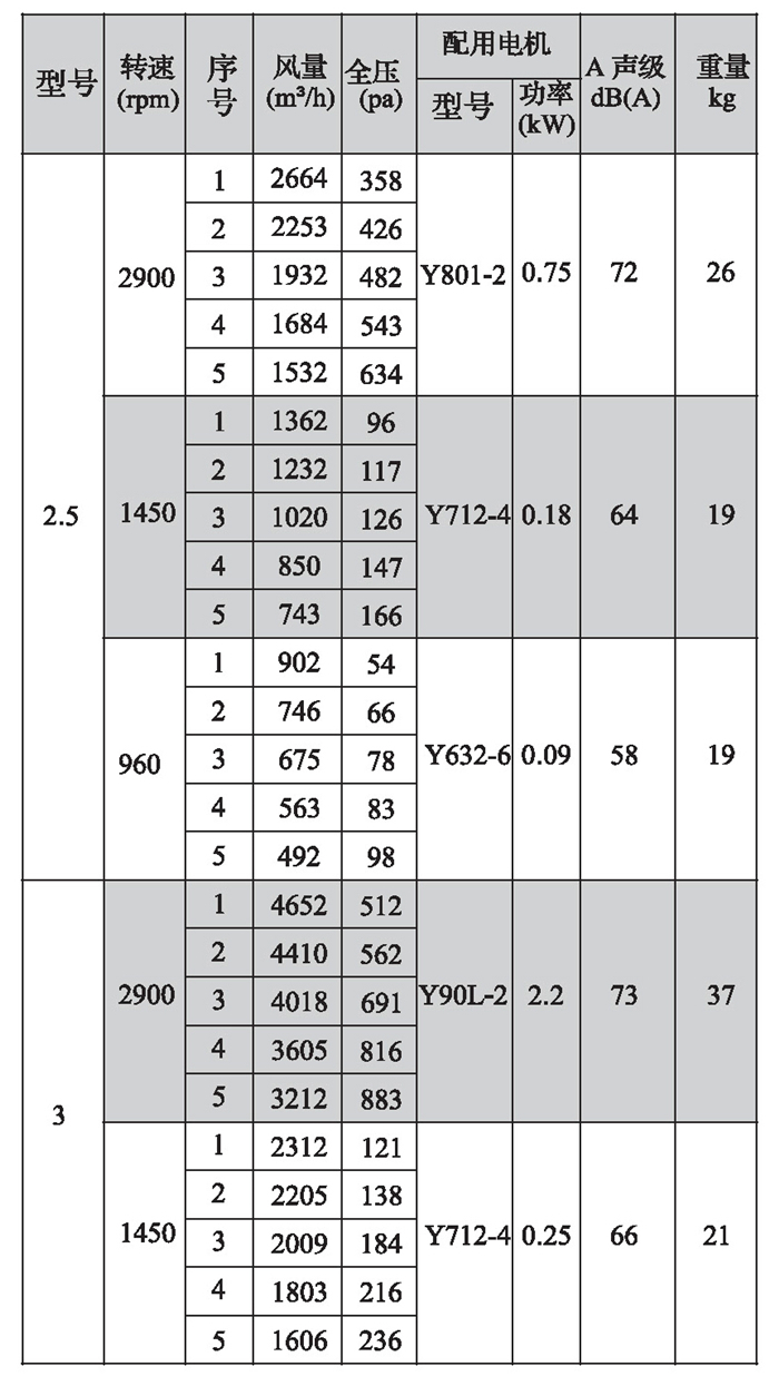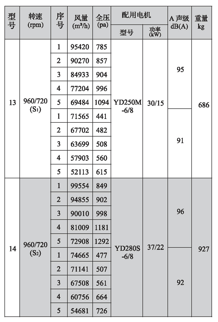 SWF-II系列混流式風(fēng)機(jī)性能參數(shù)(2)