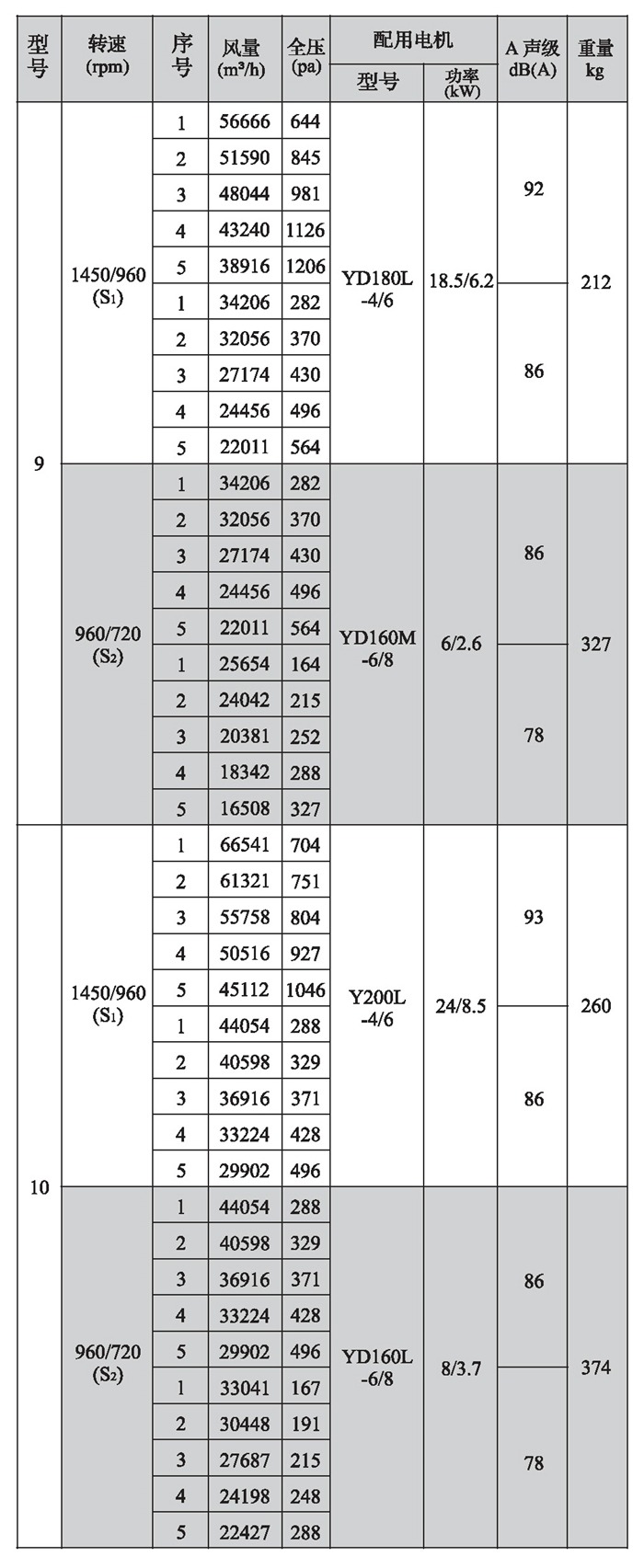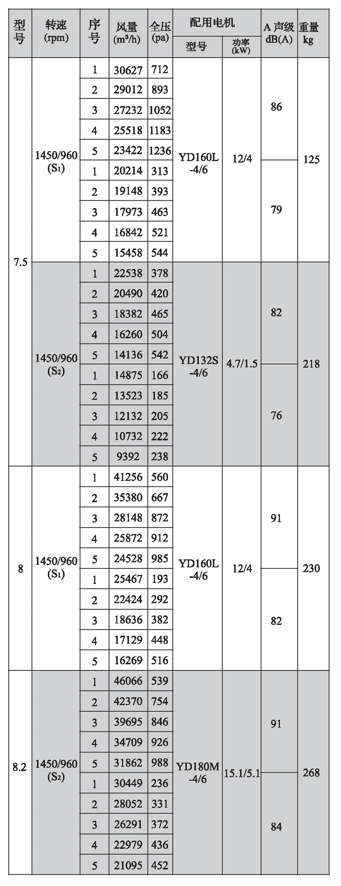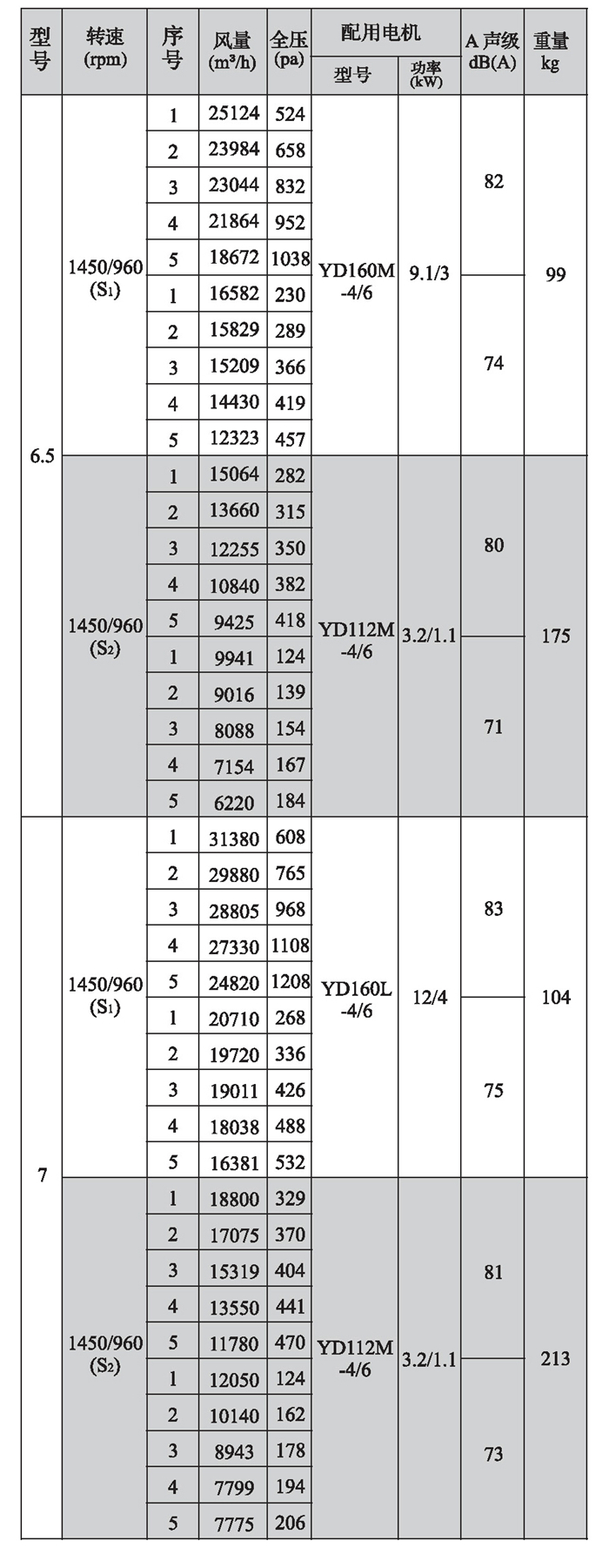 SWF-II系列混流式風(fēng)機(jī)性能參數(shù)(2)