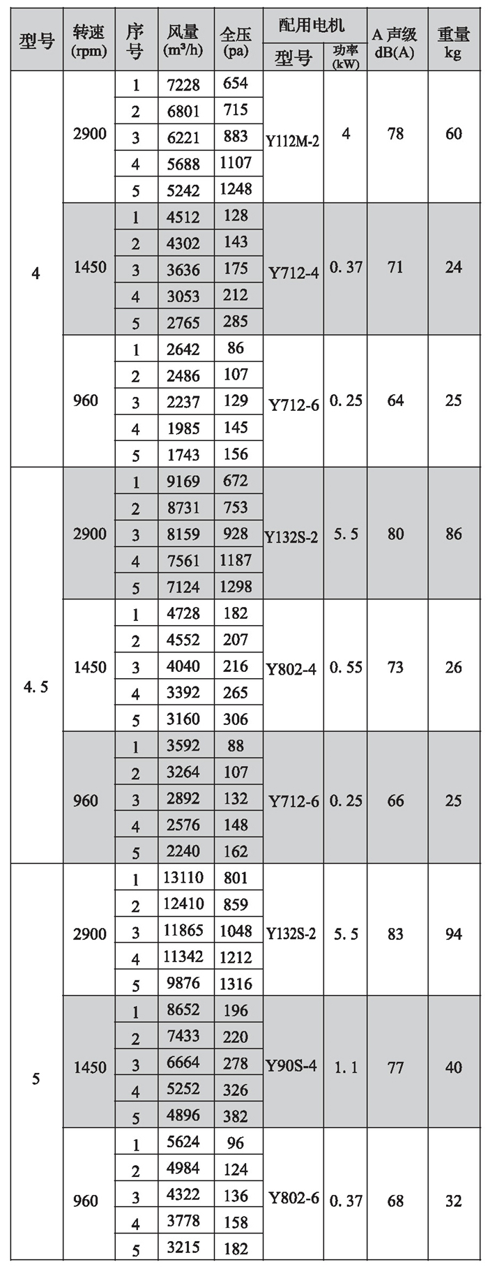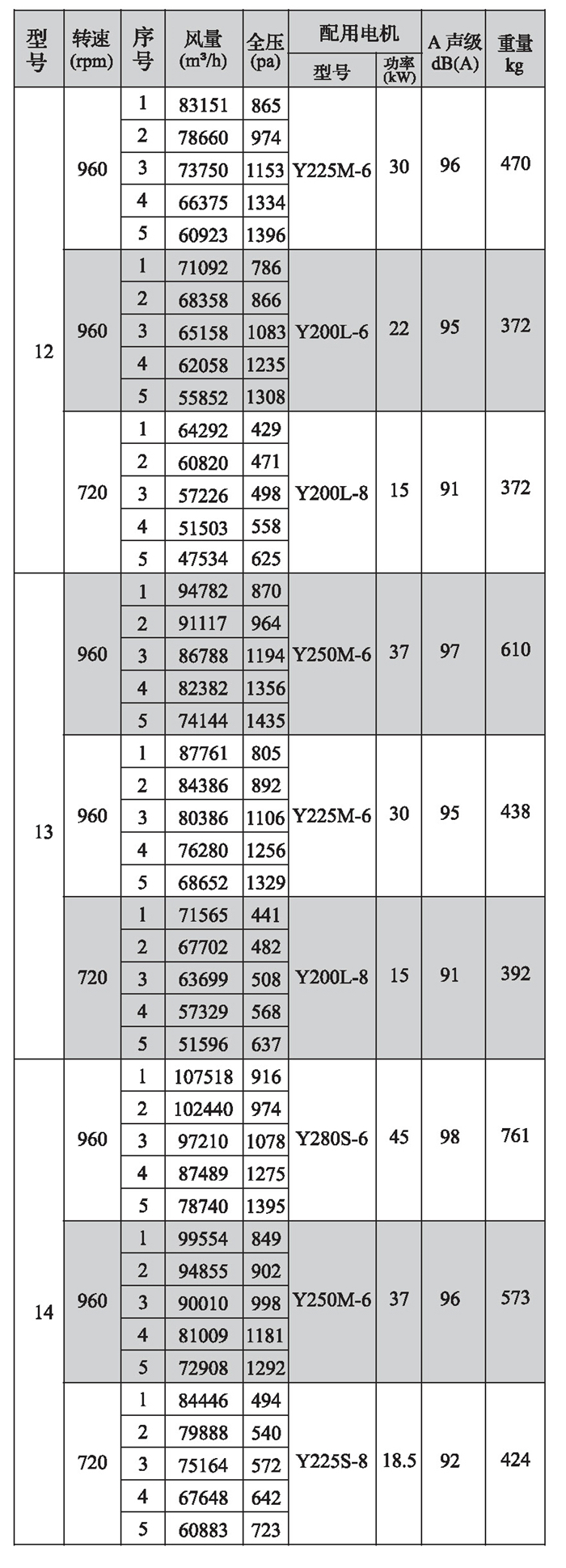 SWF-I系列混流式風(fēng)機(jī)性能參數(shù)(4)