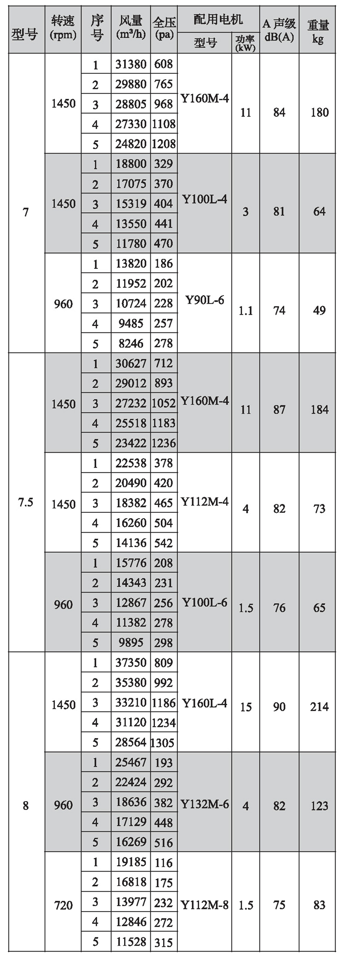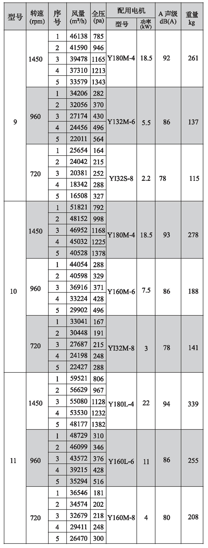 SWF-II系列混流式風(fēng)機(jī)性能參數(shù)(3)