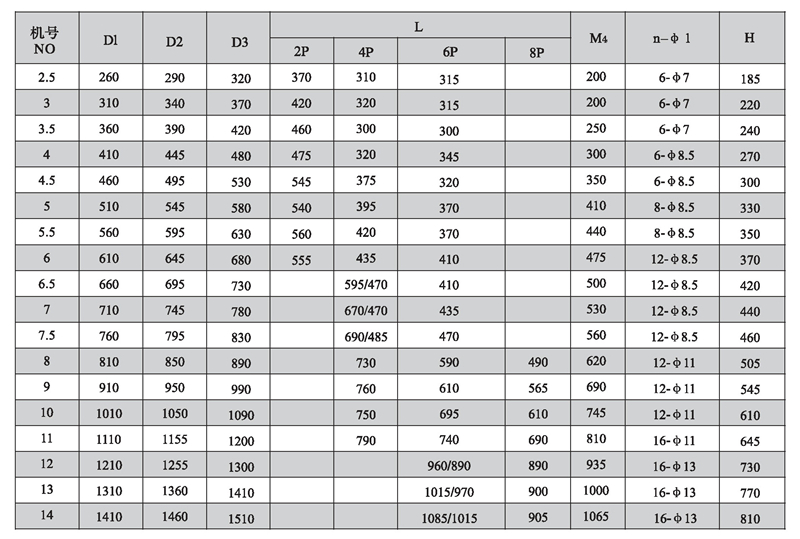 SWF-I系列混流式風(fēng)機(jī)性能參數(shù)(1)